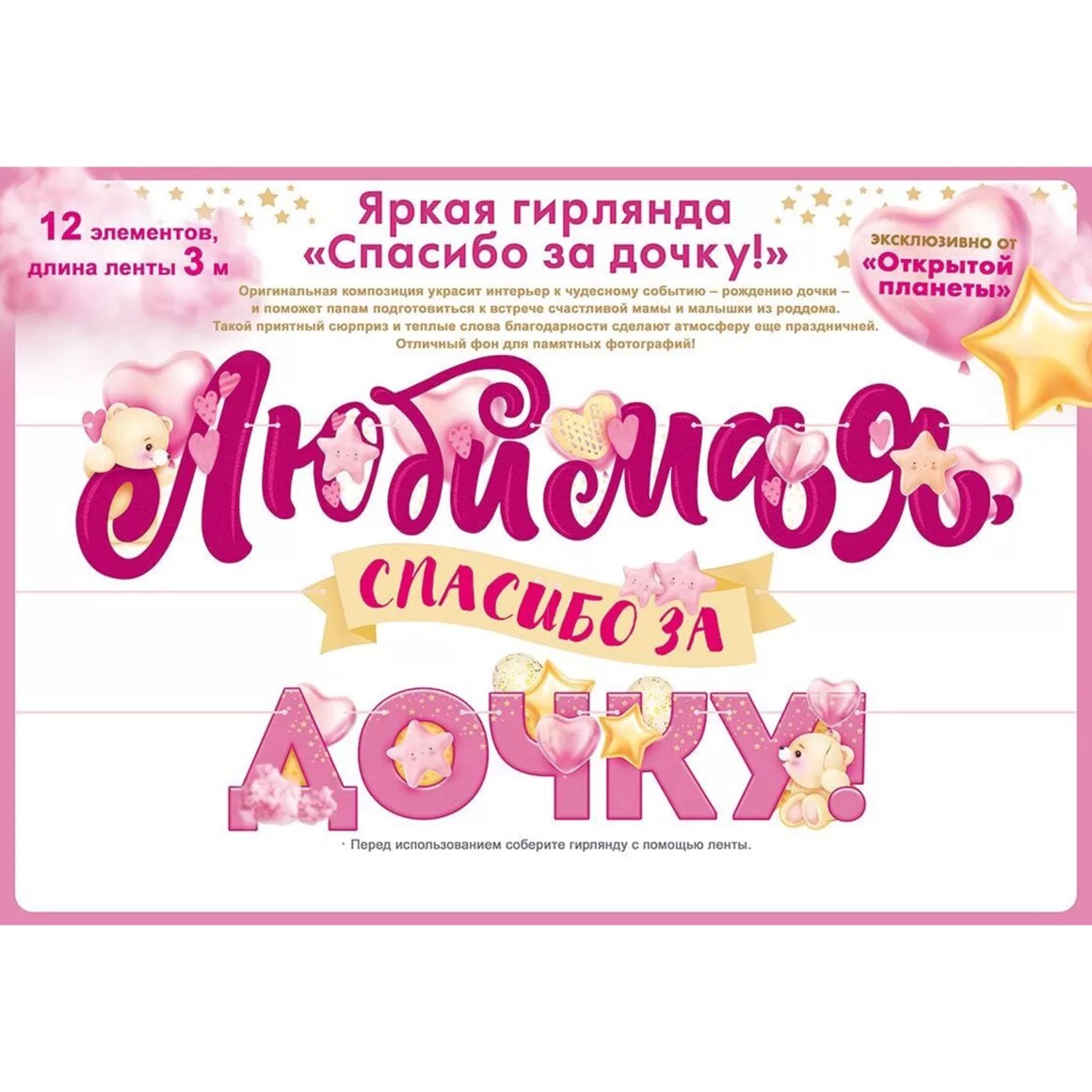 Красивая гирлянда "Любимая спасибо за дочку!" - прекрасное решение для украшения квартиры при встречи жены из роддома.