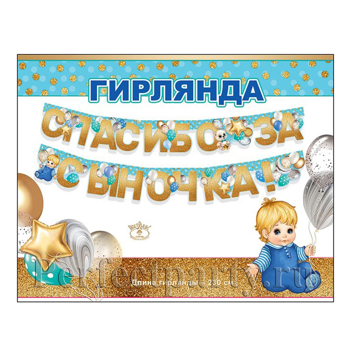 Гирлянда "Спасибо за сыночка" 2,30см с блестками