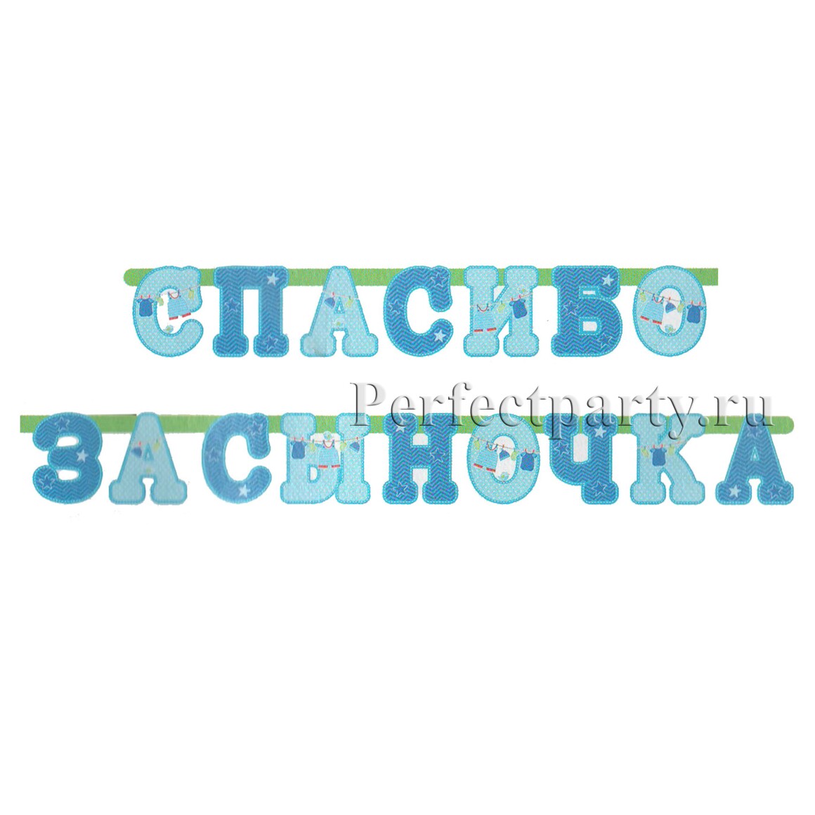 Симпатичная гирлянда в голубых тонах с трогательной надписью "Спасибо за сыночка!"