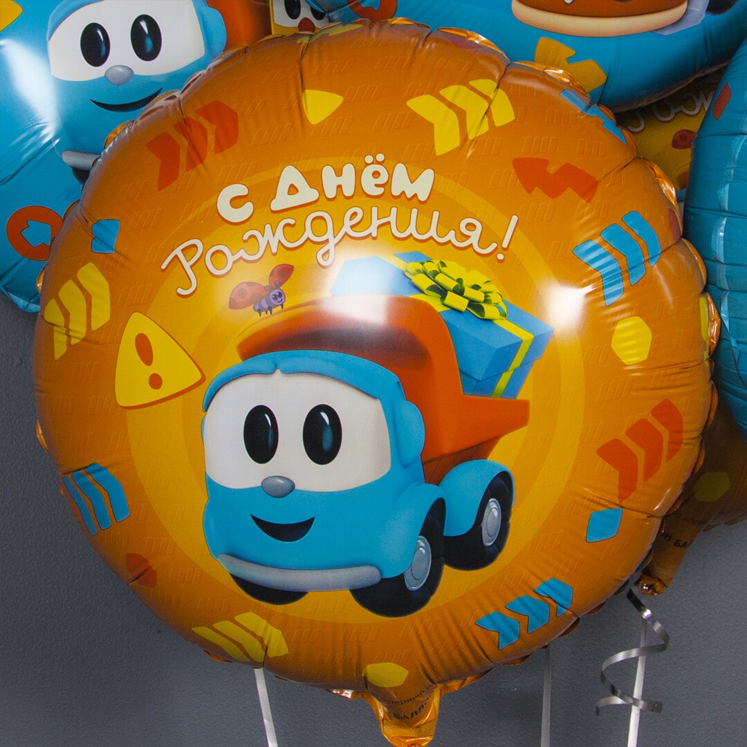 Круг "С днем рождения" Грузовичок Лёва 18"/45см
