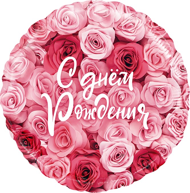 Круг "С Днем рождения" симфония роз 18"/45см