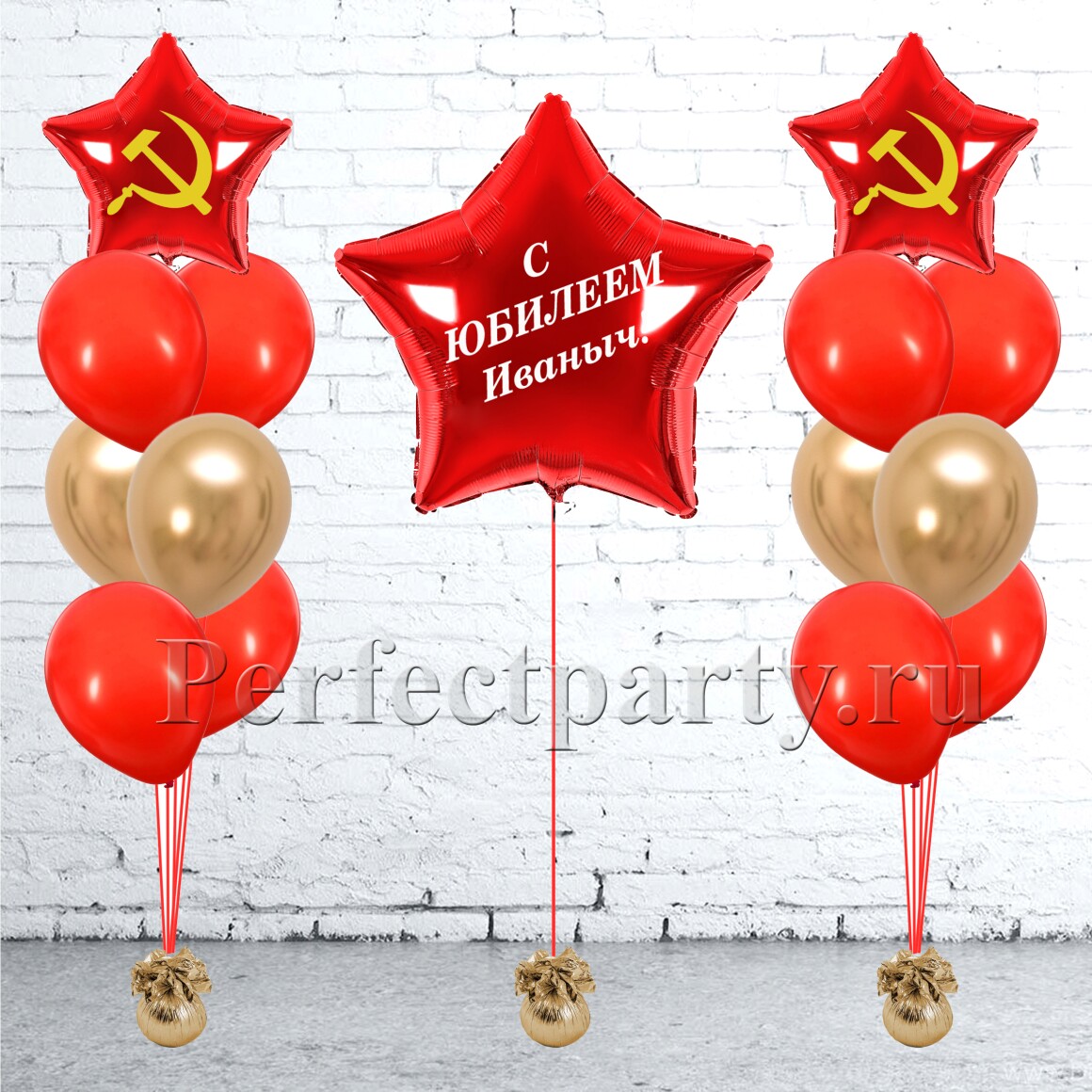 Огромная красная звезда и объемные фонтаны из 7 шаров 2м высотой украсят любой праздник как дома, так и в любом заведении.