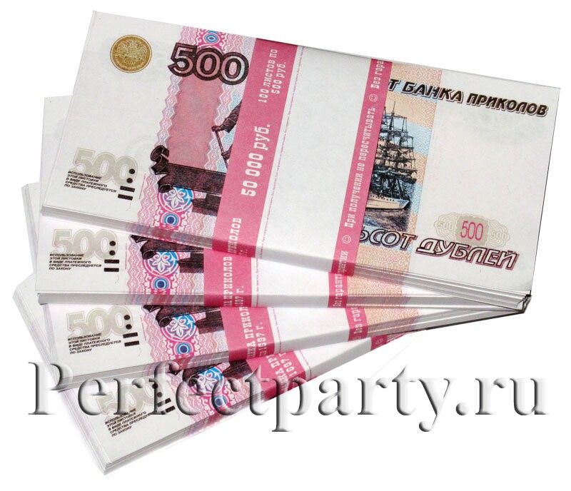 Прикольный муляж пачки денег. Пачка из 100 сувенирных банкнот номиналом 500 рублей.