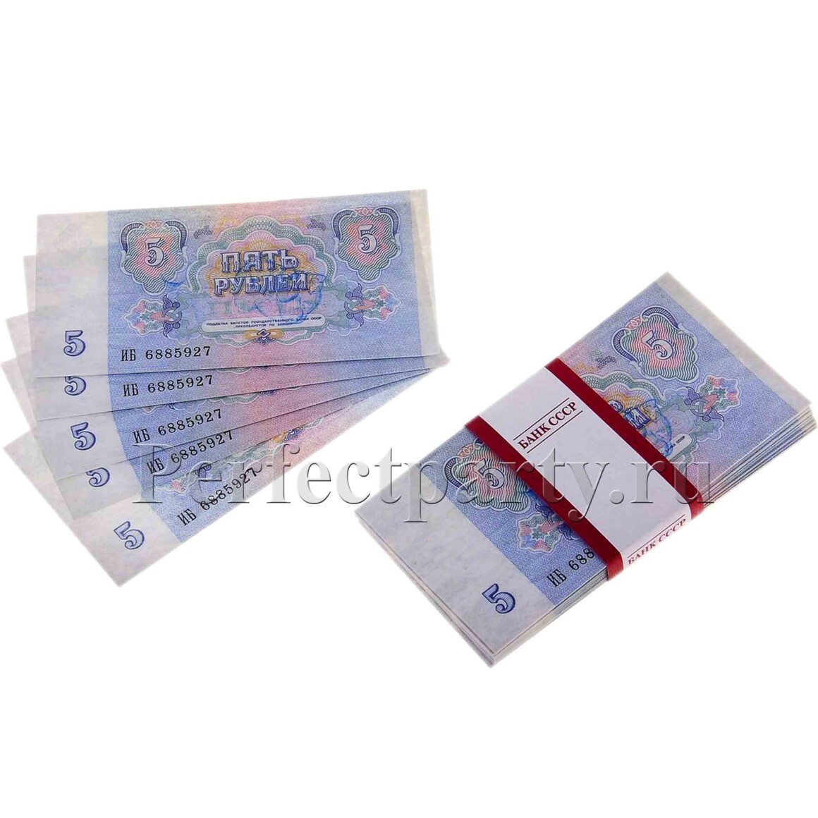 Прикольный муляж пачки денег. Пачка из 100 сувенирных банкнот времен СССР, номиналом 5 рублей.