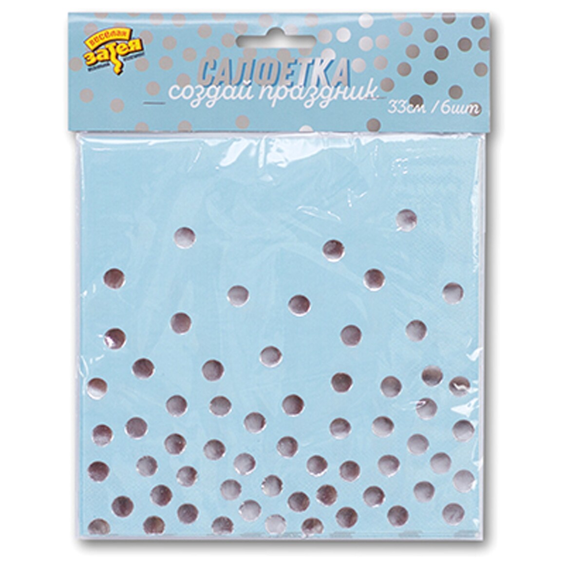Набор бумажных салфеток голубого цвета с серебряным горохом цвета 6 штук, 33 см