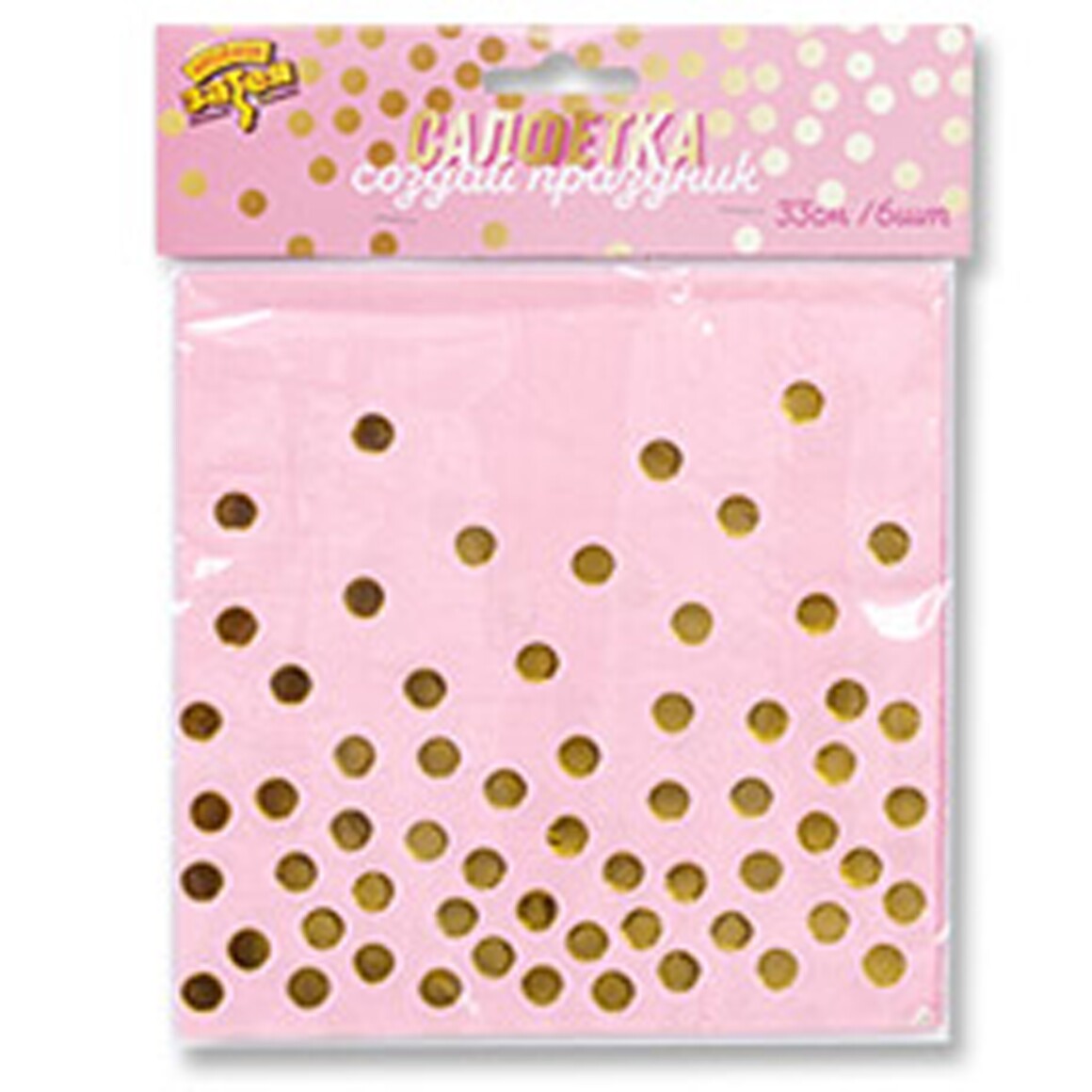 Набор бумажных салфеток розового цвета с золотым горохом цвета 6 штук, 33 см