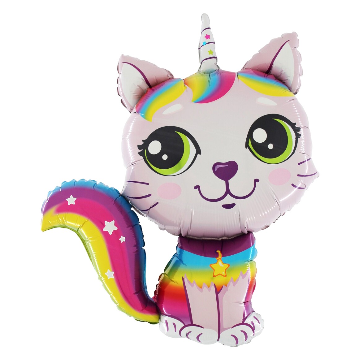 Шар фигура "Котенок - Единорог " розовый 38"/97см