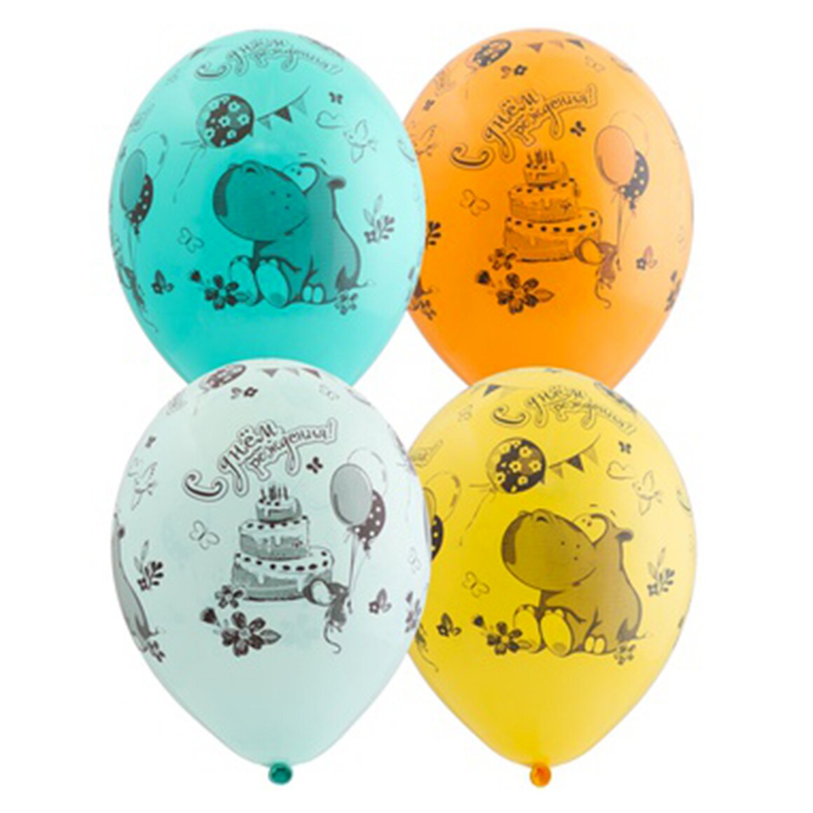 Шар с рисунком "Бегемот с тортом" ДР 14"/35см