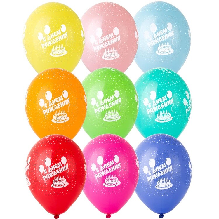 Шары с рисунком "День рождения" 14"/35см
