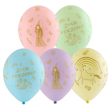 Шары с рисунком "С ДР Принцесса" единорог 14"/35см