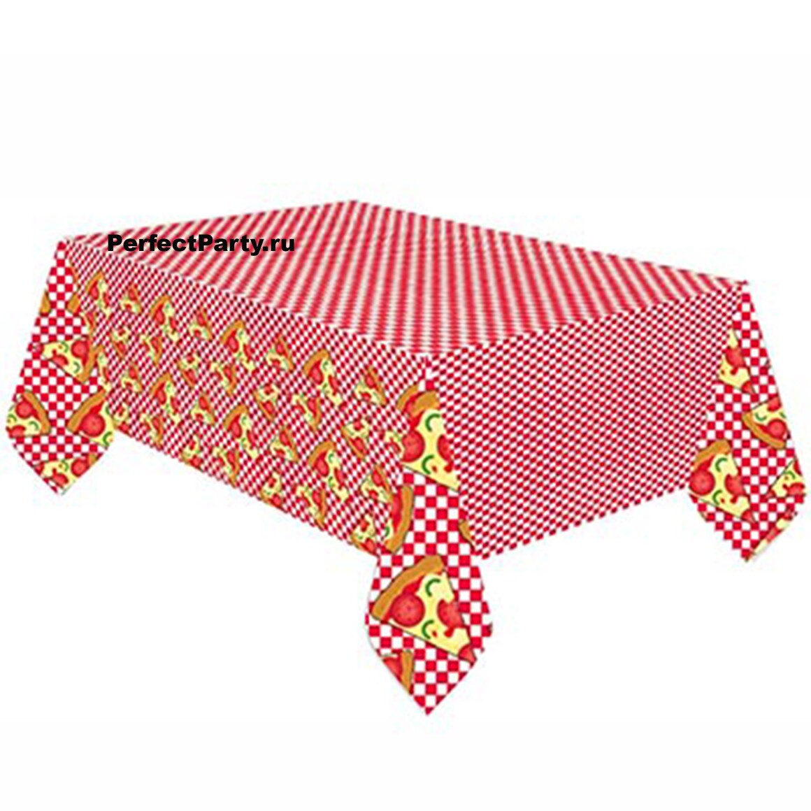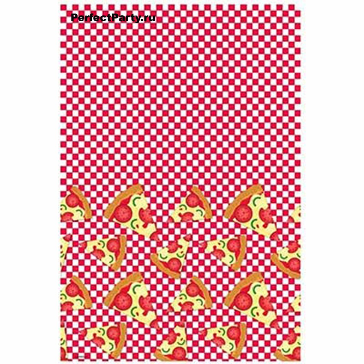 Бумажная скатерть в итальянском стиле украшена кусочками пиццы.