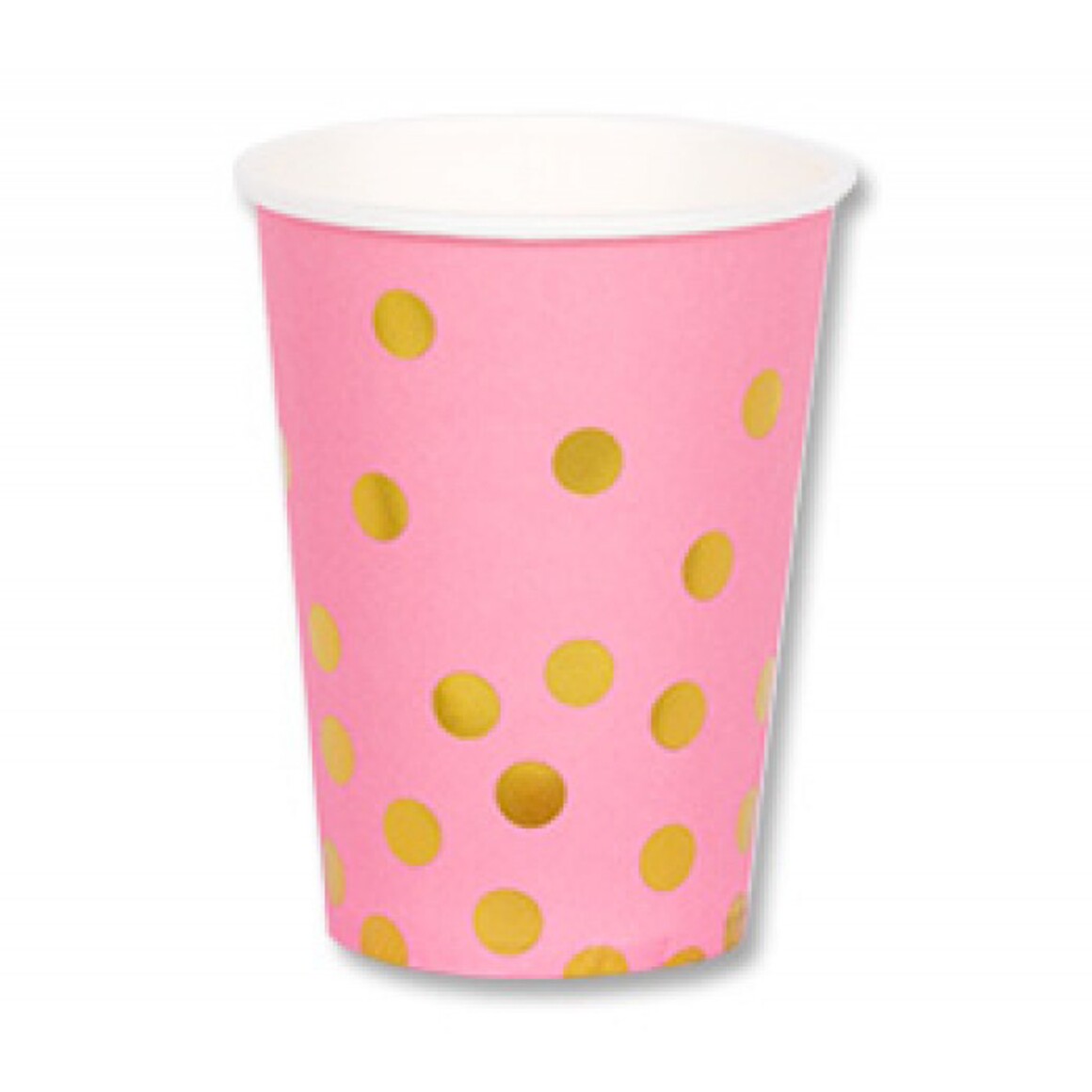 Набор бумажных стаканчиков розового цвета с золотым горохом цвета 6 штук, 210мл