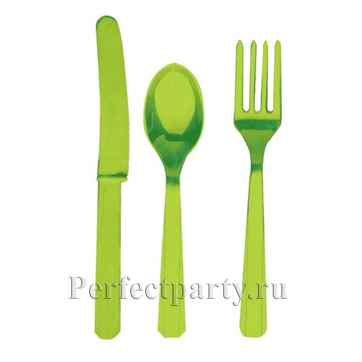 Набор пластиковых столовых приборов салатового цвета на 8 персон (вилка, ложка, нож)