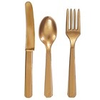 Набор пластиковых столовых приборов золотого цвета на 8 персон (вилка, ложка, нож)