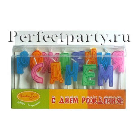 Оригинальные свечи для торта в виде надписи "С Днем Рождения" несомненно порадуют виновника торжества