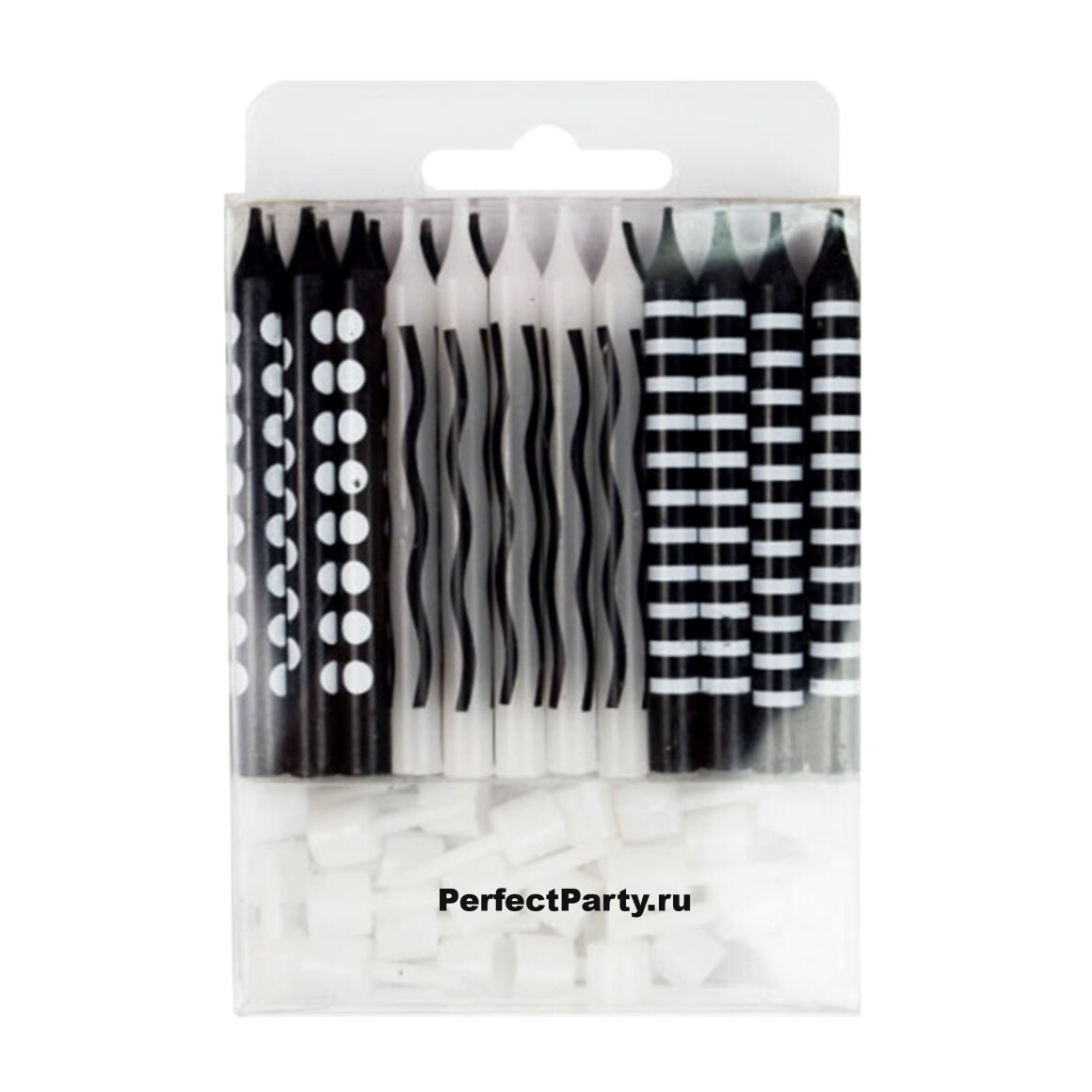 Свечи Черные ассорти 6см с держателями 24шт