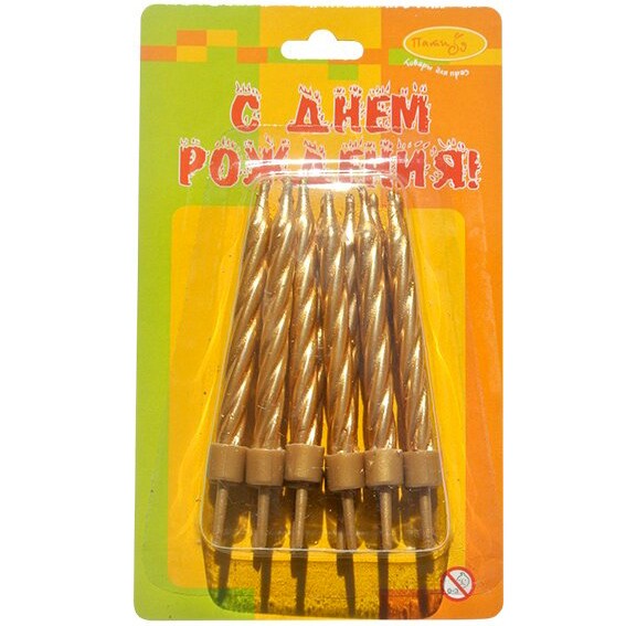 Свечи для торта "Золотые" 6см/12шт
