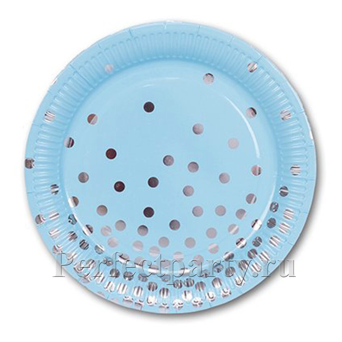 Набор бумажных ламинированных тарелок голубого цвета с серебряным горохом цвета 6 штук, 23 см
