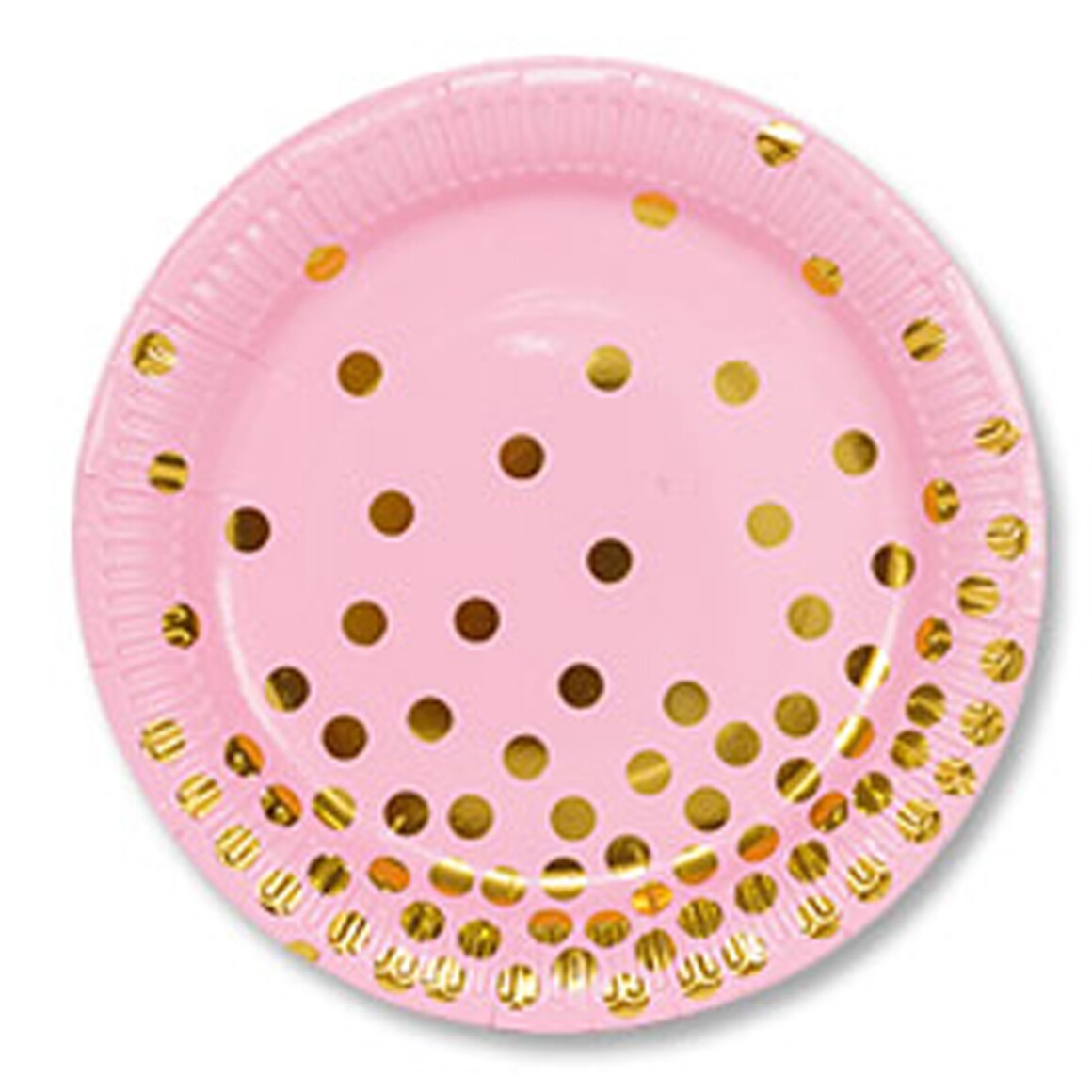Набор бумажных ламинированных тарелок розового цвета с золотым горохом цвета 6 штук, 23 см