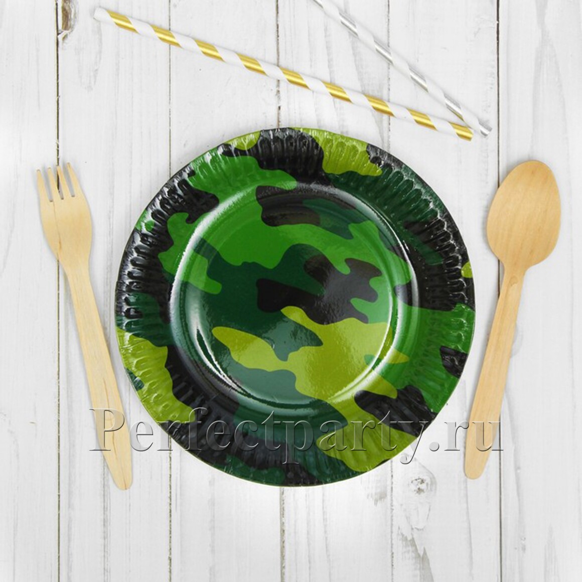 Тарелки, бумажные ламинированные Камуфляж 6шт 17см