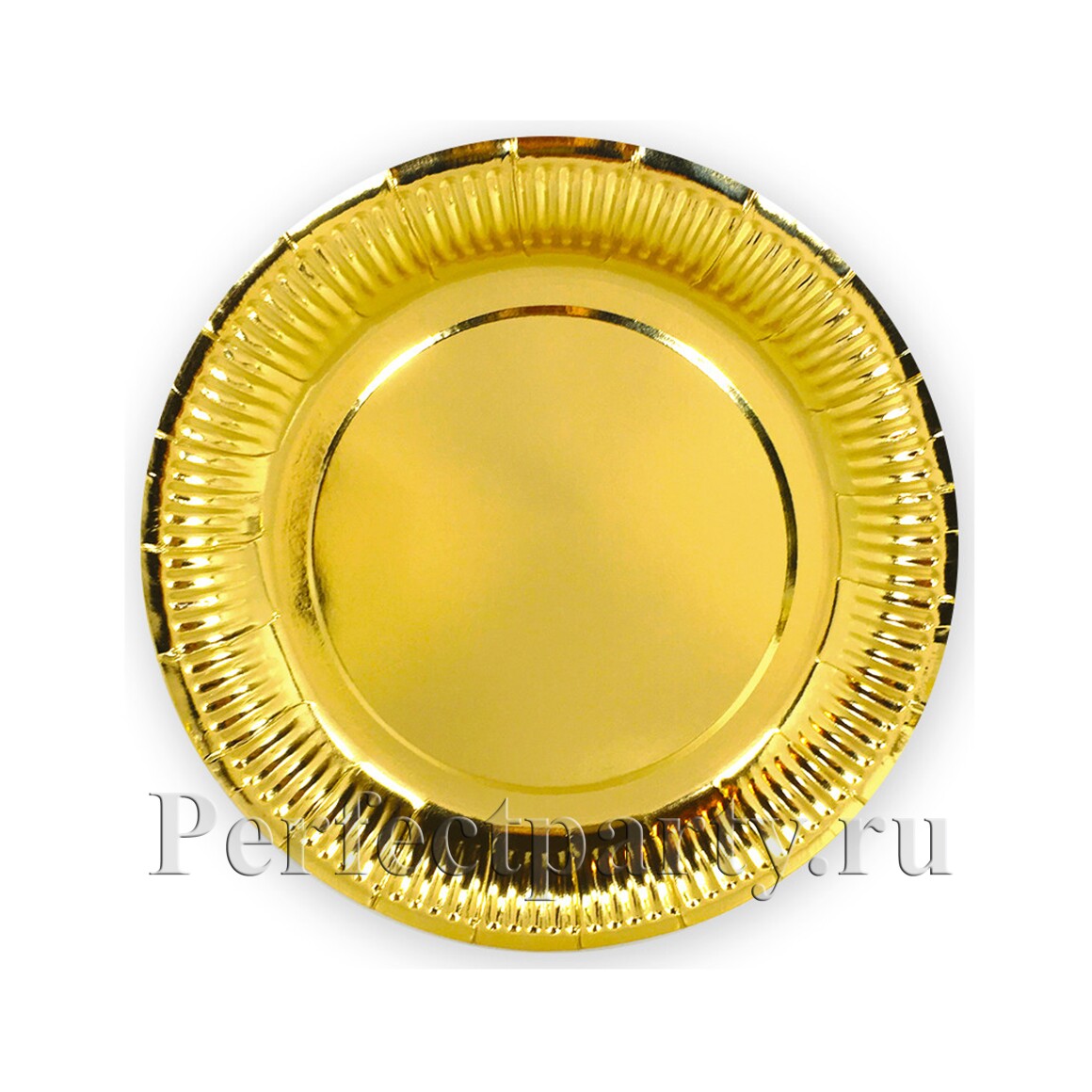 В наборе 6 штук фольгированных золотых тарелок 17см