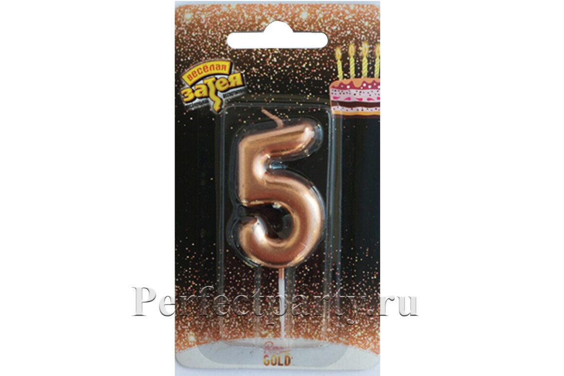 Прекрасная свеча для торта цифра 5 в цвете розовое золото - идеальный вариант для оформления юбилейных тортов.