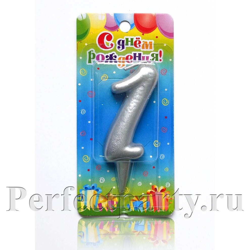 Свеча для торта в серебряном цвете.