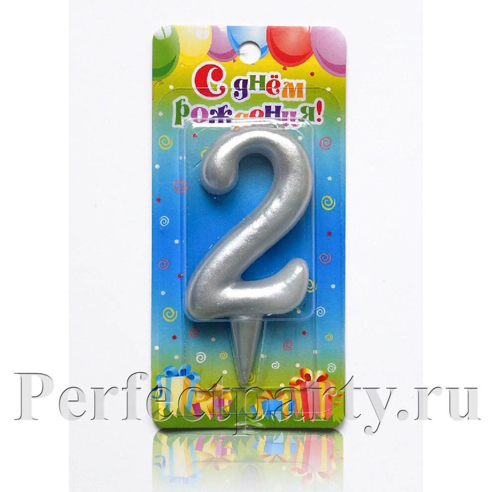 Свеча для торта в серебряном цвете.
